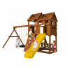 Детский городок изготовлен из северной древесины хвойных пород, обработанной безопасной декоративно-защитной пропиткой. Технология значительно увеличивает срок службы конструкций, повышает прочность древесины, защищает её от гниения и грибков. Обработка придаёт дереву приятный оттенок, проявляет и подчёркивает его текстуру. Используемая пропитка не содержит токсичных компонентов, экологична и абсолютно безопасна для ребёнка. Состав прошёл санитарно-эпидемиологическую экспертизу в Центре гигиены и эпидемиологии в г. Октябрьскому.
