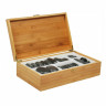 Камни уже готовы к использованию. Предварительно их нужно нагреть при помощи специального прибора. Весь комплект упакован в стильный деревянный короб, позволяющий легко хранить камни в перерывах между процедурами.