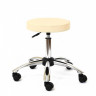 Стул круглый со спинкой на хромированной стальной раме в форме пятилучия, оснащенный колесами и регулировкой высоты, при помощи газ-лифта.