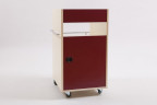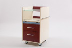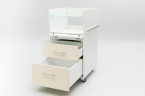 На основание тумбы установлены профессиональные металлические колеса с покрытием из сырой резины. Элегантные хромированные ручки придают тумбе эстетичный внешний вид.